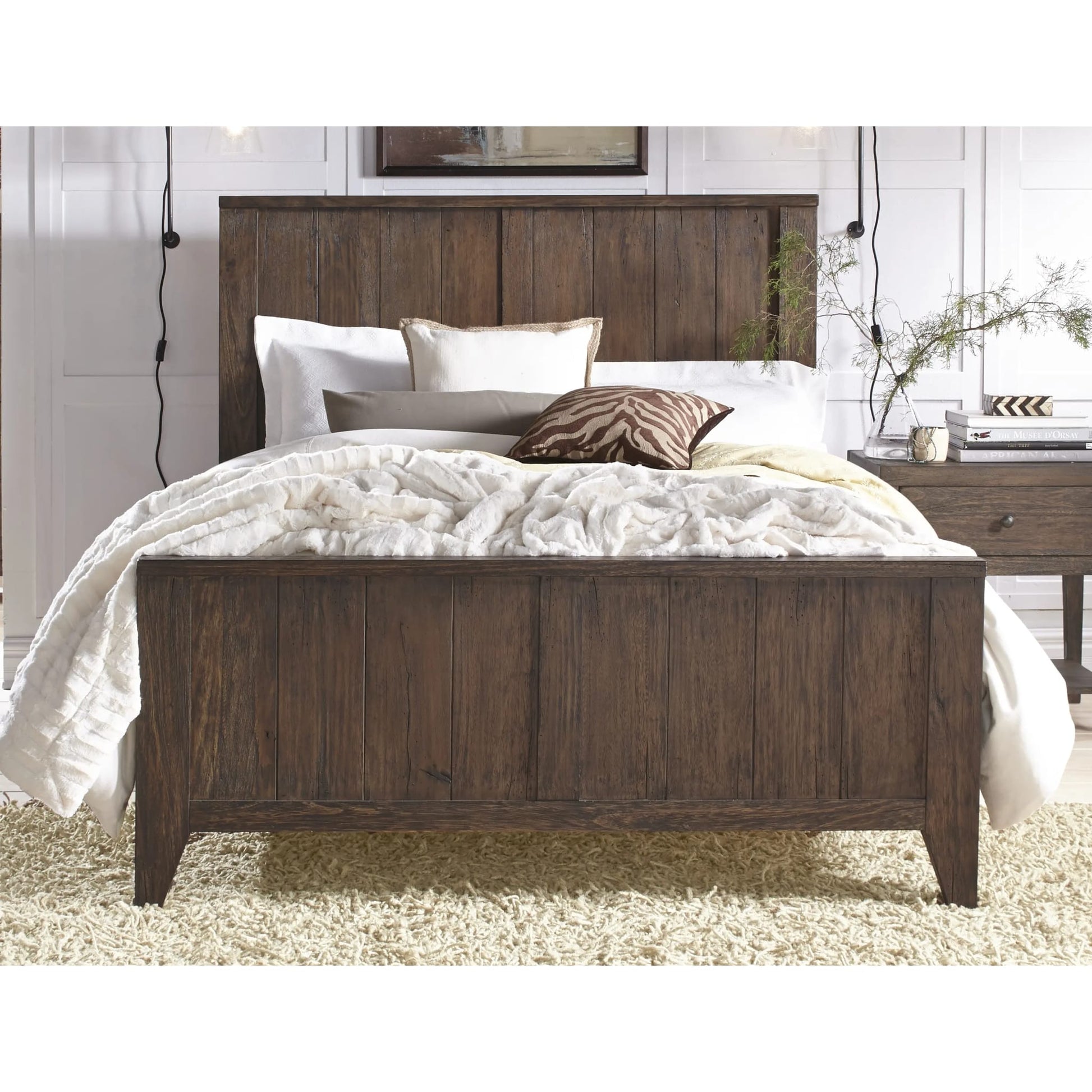 Corinth Solid Wood Panel Bed in River Wash